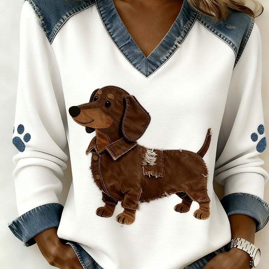 Paloma - Dámský retro top s V výstřihem, patchwork s potiskem zvířat, pohodlný a volného střihu