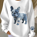 Rosa - Dámská mikina s patchworkem z denimu ve stylu francouzského buldoka