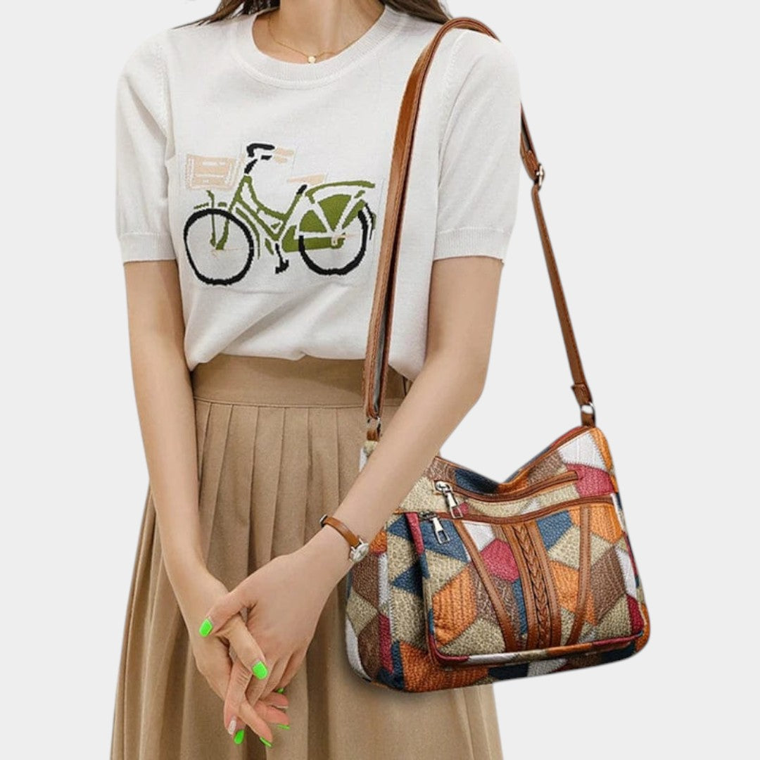 • Výrazný patchworkový design, který spojuje umělecký vzhled s každodenní praktičností