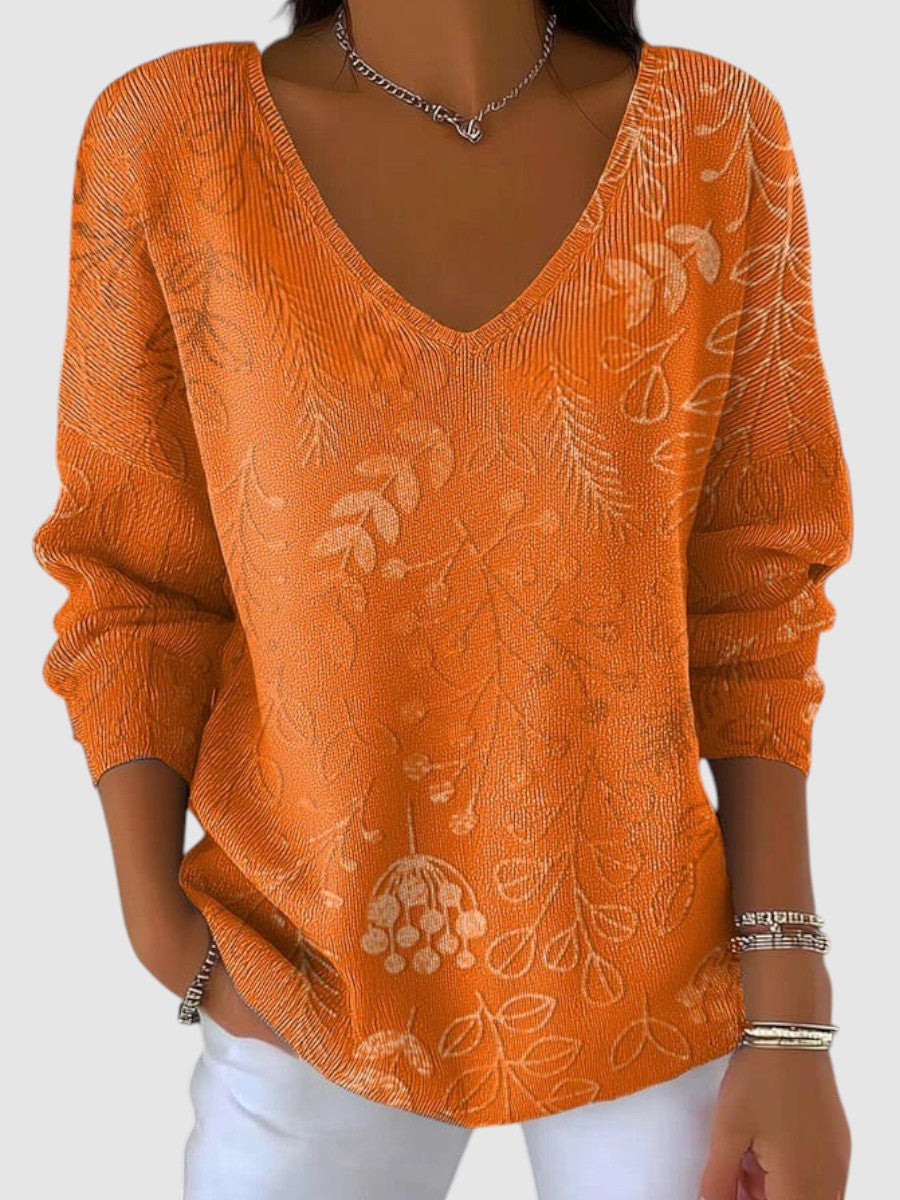 Elegantní a pohodlný svetr, který kombinuje moderní design s decentním vzorem. Výstřih do V opticky prodlužuje postavu a dodává ženský vzhled, zatímco volnější střih zajišťuje maximální pohodlí při nošení. Perfektní k džínům, sukni i elegantním kalhotám.