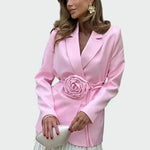Romantické a elegantní sako, které vyniká díky pásku ve tvaru růže, dodávající ženskost a nadčasový styl. Tailored střih zvýrazňuje siluetu, zatímco detaily saka ho činí ideálním pro zvláštní příležitosti a chic vzhledy. Skvěle se kombinuje se sukní nebo kalhotami pro look, který přitahuje pozornost.