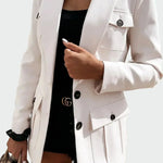 Sako s rafinovaným designem, které dodává dynamický a moderní styl. Disponuje klasickým klopovým límcem, knoflíky na přední straně a praktickými kapsami s klopou. Ideální pro pracovní vzhled, ale také pro více casual kombinace, dodává šarm a eleganci při každé příležitosti.