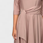Přidejte elegantní prvek do svého šatníku s těmito krásnými midi šaty. Design kombinuje lichotivou siluetu s moderním nádechem. Pasový pásek zvýrazňuje postavu a zajišťuje dokonalé padnutí. S tříčtvrtečními rukávy a splývavou sukní jsou tyto šaty ideální pro slavnostní příležitosti, elegantní večírky nebo dokonce pro každodenní nošení, když chcete mít nádech sofistikovanosti.