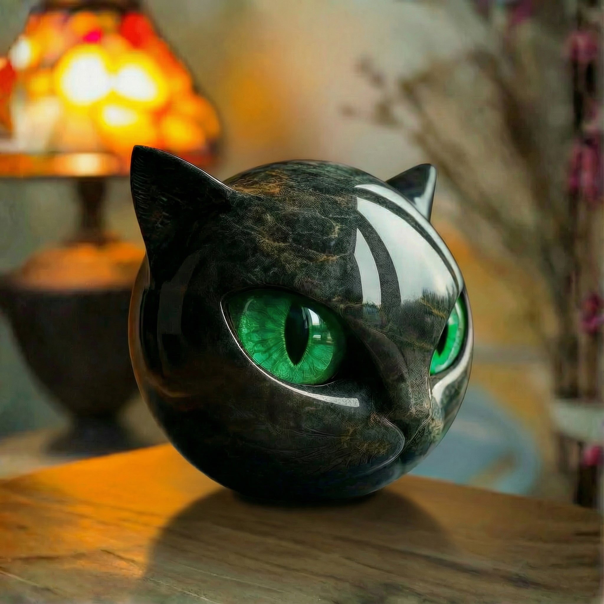• Pronikavý design ve tvaru kočičího oka - Přehnaně velké mandlové oči jsou středobodem této sochy, která okamžitě přitahuje pozornost svou intenzitou. Hloubka kolem očních důlků dodává kočičí hlavě téměř realistický vzhled. Perfektně balancuje mezi tajemstvím a elegancí