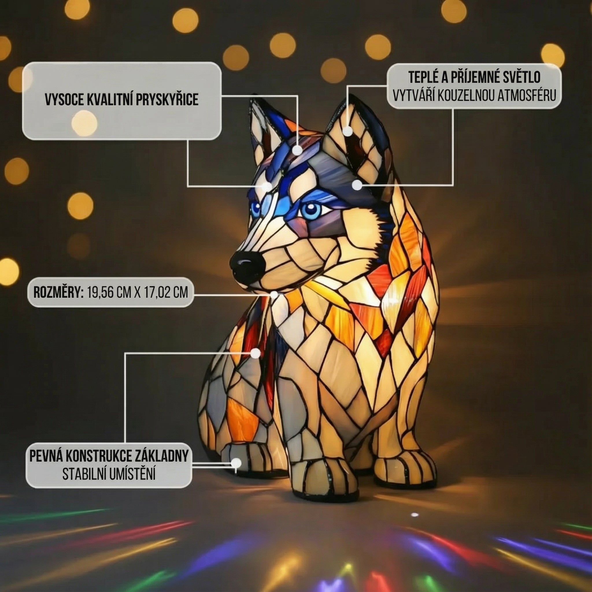 • Živé barvy - Její živé tóny a design z vitráží okamžitě upoutají pozornost a oživí každý prostor