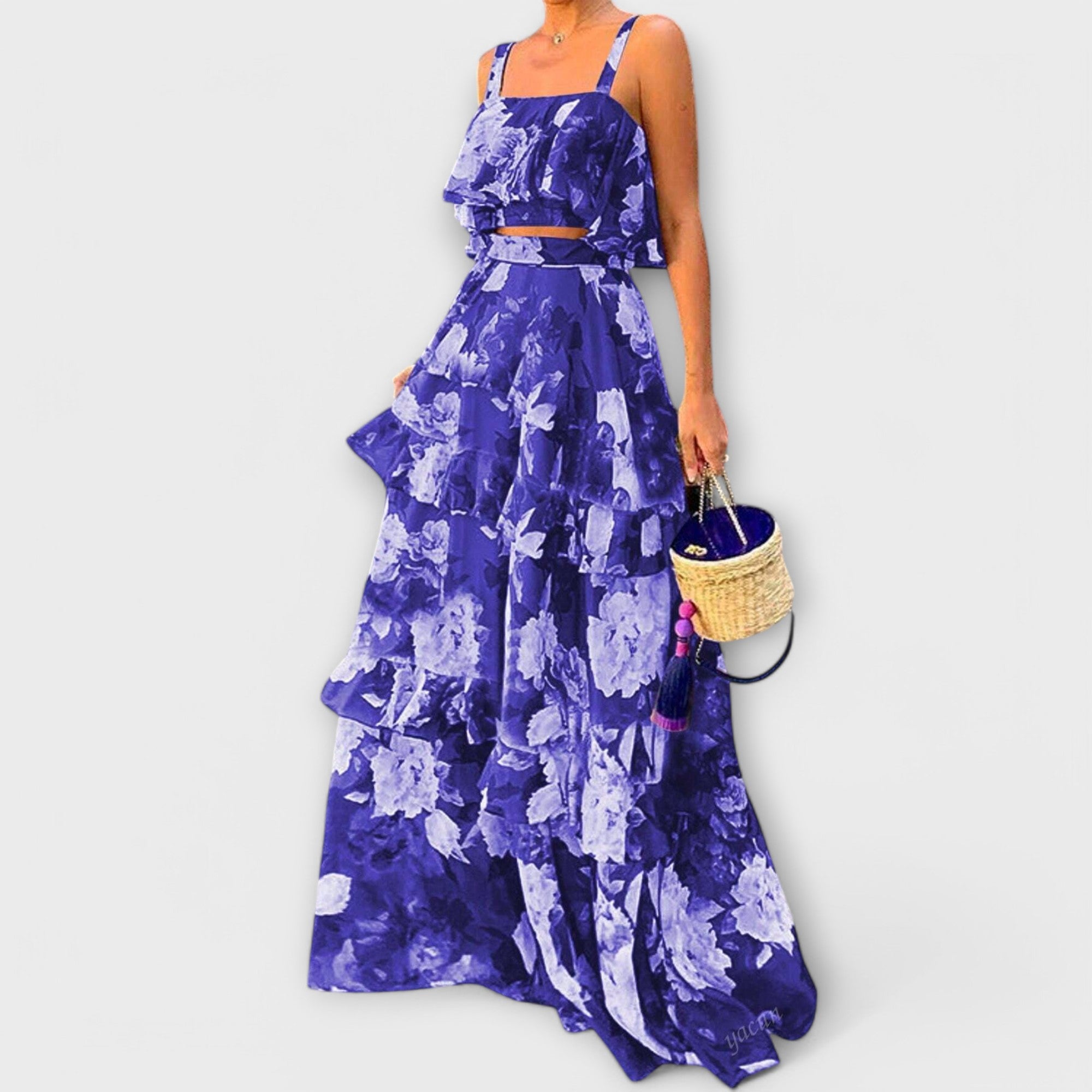 Podšívka pro větší teplo je ideální na chladnější dny. Snadná údržba pomocí ručního praní nebo profesionálního čištění. Přidejte do svého šatníku dotek elegance s tímto stylovým topem na ramínka a sukněmi v krásné modré barvě.