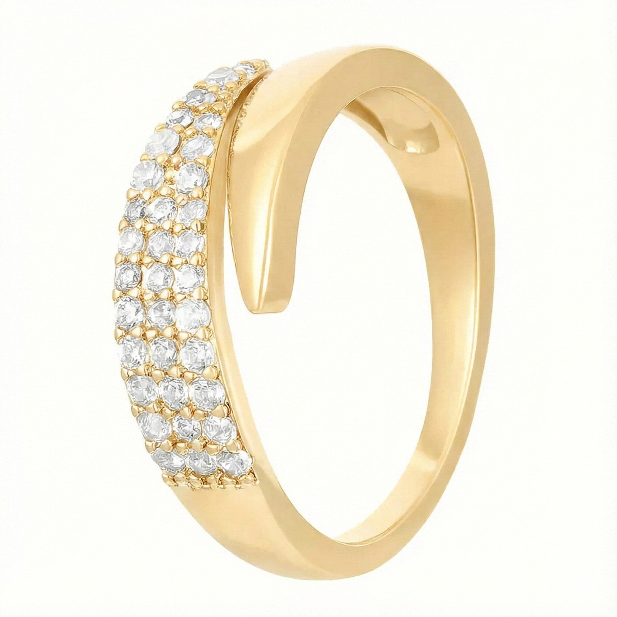 Ozdobte svou ruku prstenem Sofia, který je symbolem moderní elegance a ženskosti. Jeho unikátní propletený design, kombinující hladký zlatý lesk s řadou jiskřivých kamínků, dodá vašemu gestu okamžitý půvab. Je to šperk, který je dostatečně jemný do práce, ale zároveň dostatečně výrazný, aby zazářil při večerní příležitosti.