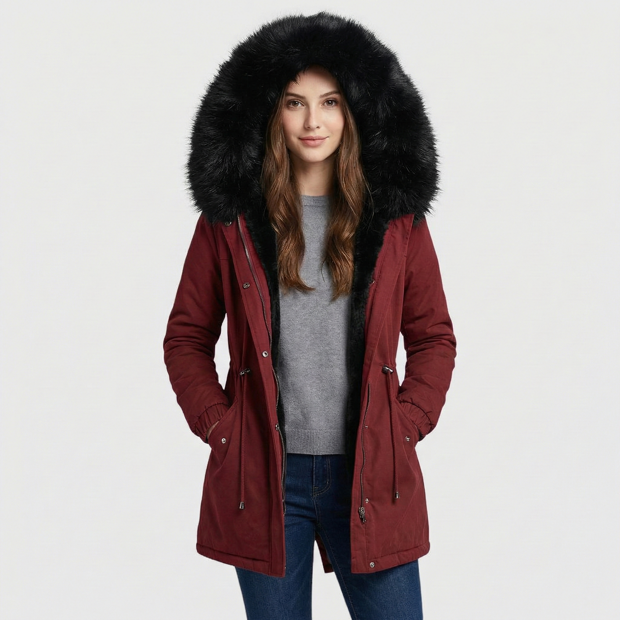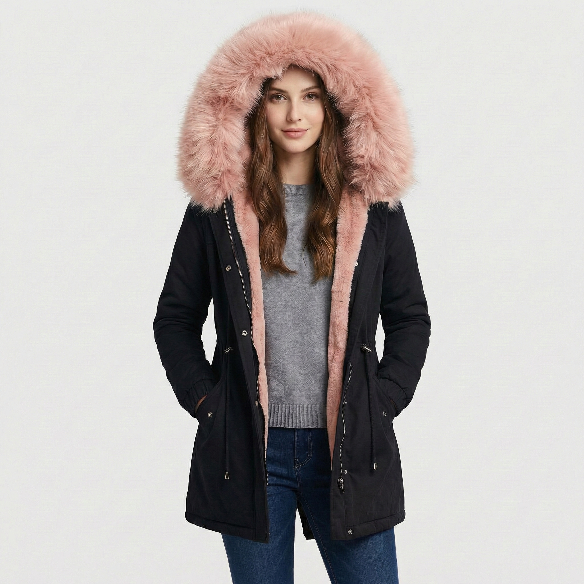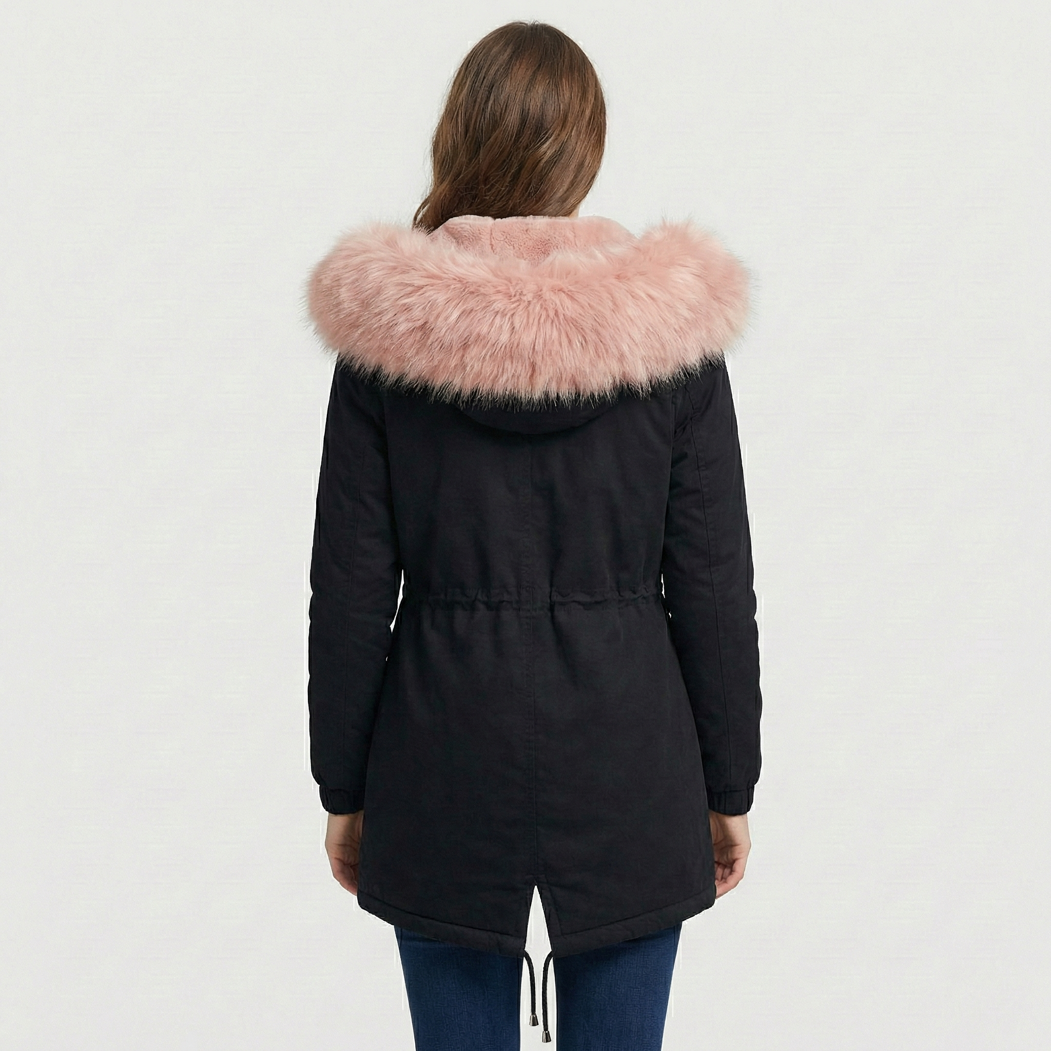 • Maximalistický komfort: Bohatá kožešinová výplň v kapuci a podél zapínání funguje jako vysoce účinná tepelná bariéra a poskytuje luxusní pocit na dotek.